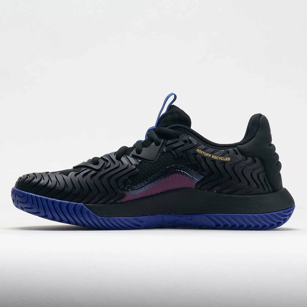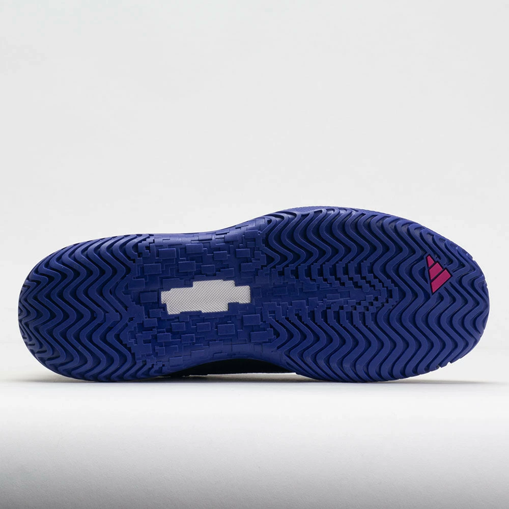 Upper: Mesh upper contains a minimum of 50% recycled content for sustainability. Adituff toe resists abrasion from toe drag on serves and lateral moves. 3D-molded heel adds security.