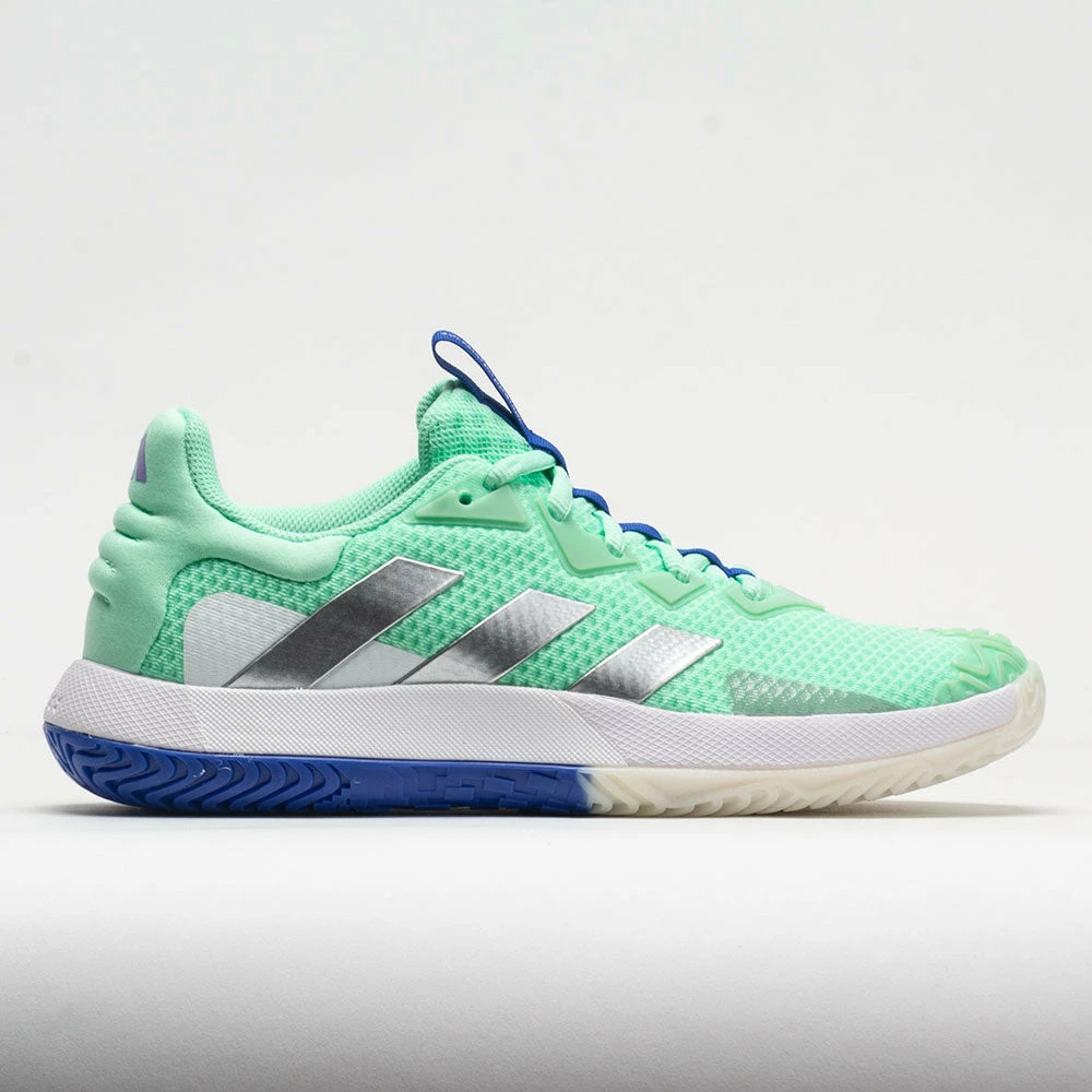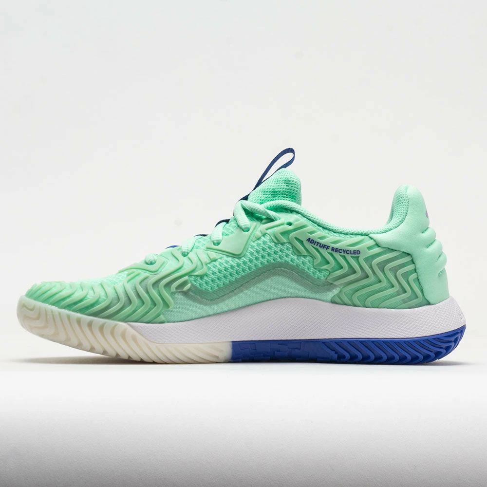 Upper: Mesh upper contains a minimum of 50% recycled content for sustainability. Adituff toe resists abrasion from toe drag on serves and lateral moves. 3D-molded heel adds security.