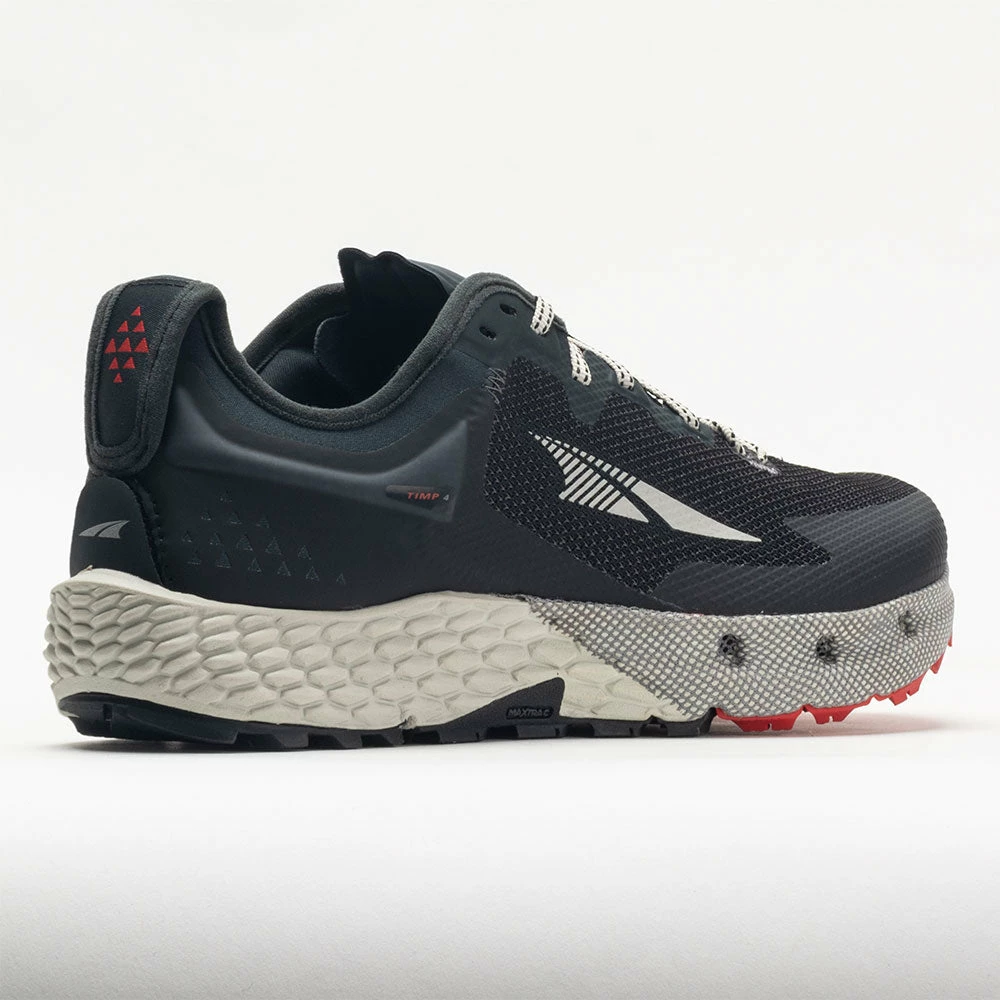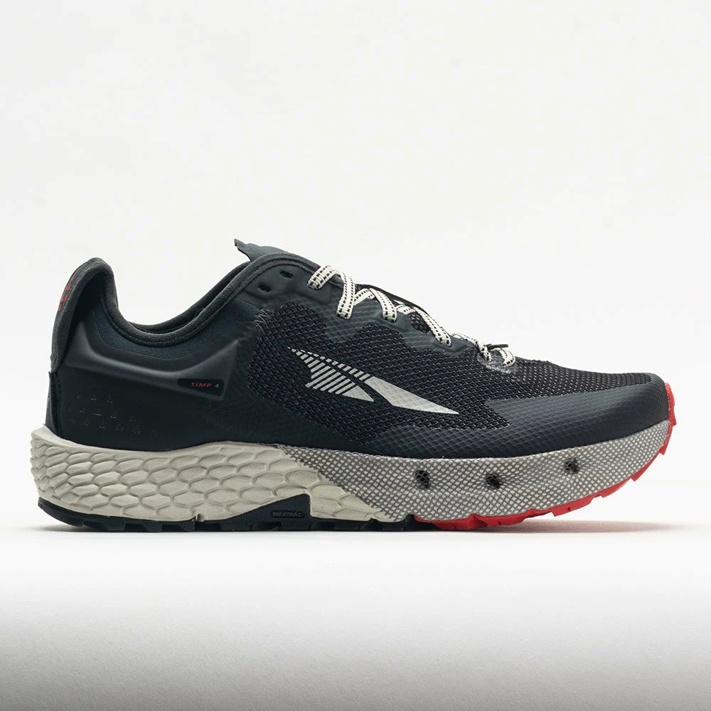 Enjoy lasting comfort for many miles in the Altra Timp 4! This ultra-cushioned trail cruiser gets a heel-to-toe overhaul, featuring a durable upper, soft midsole and grippy outsole. Extra drainage ports in the forefoot help you stay dry while passing through streams, creeks and puddles. Every stride on the Altra EGO™ Max midsole keeps you energized during long hikes or trail runs. Dominate the dirt with multi-directional MaxTrac™ outsole lugs. Built for long days on the trail, the Altra Timp 4 goes the distance!