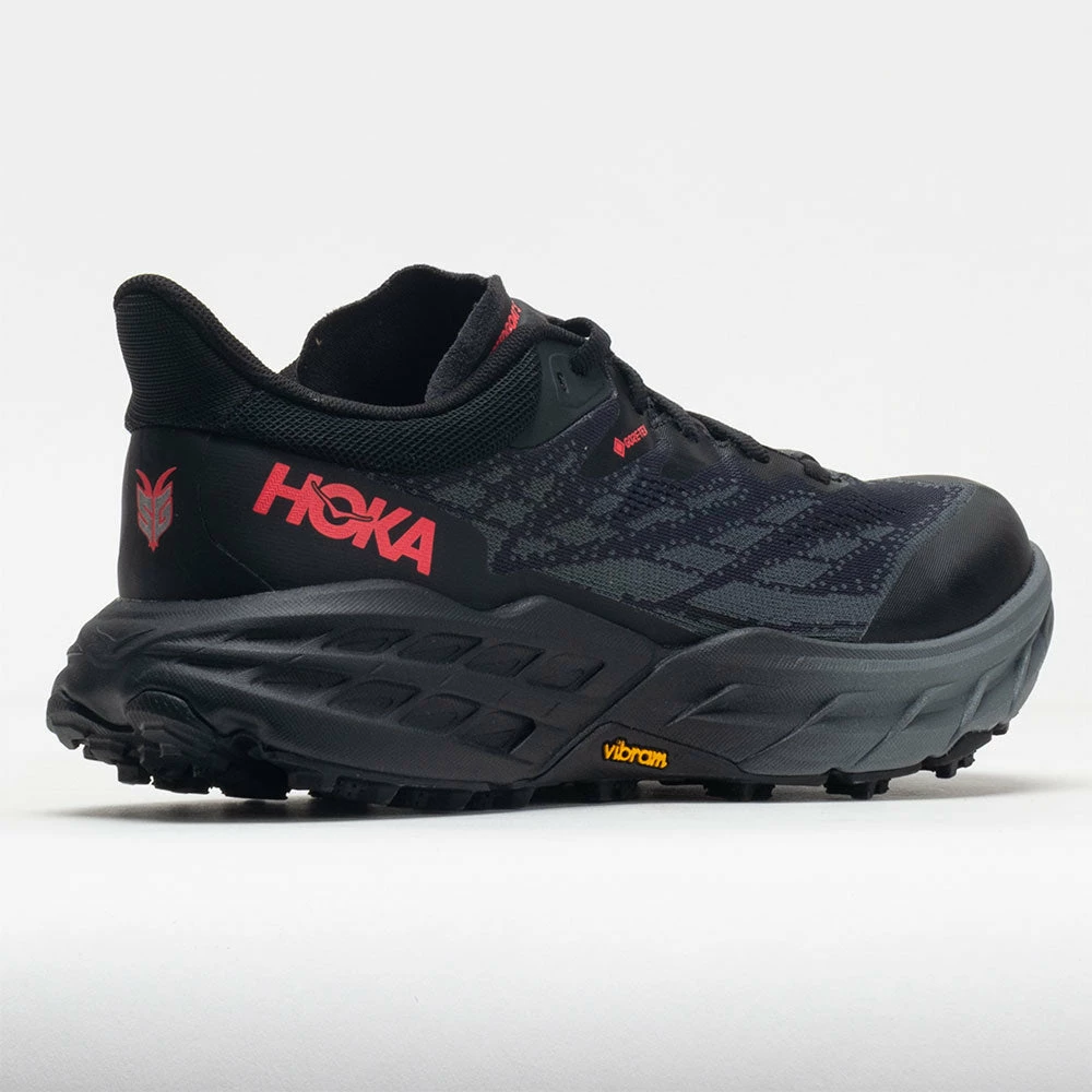Grippy and cushioned, the HOKA Speedgoat 5 GTX is a speedy trailblazer! This trail-ready workhorse features a GORE-TEX waterproof membrane to keep you safe in wet conditions. The Vibram® Megagrip outsole provides reliable traction on sloppy terrain. For runners and hikers who want to fly over wet and rocky roads, the HOKA Speedgoat 5 GTX prevails on any trail!