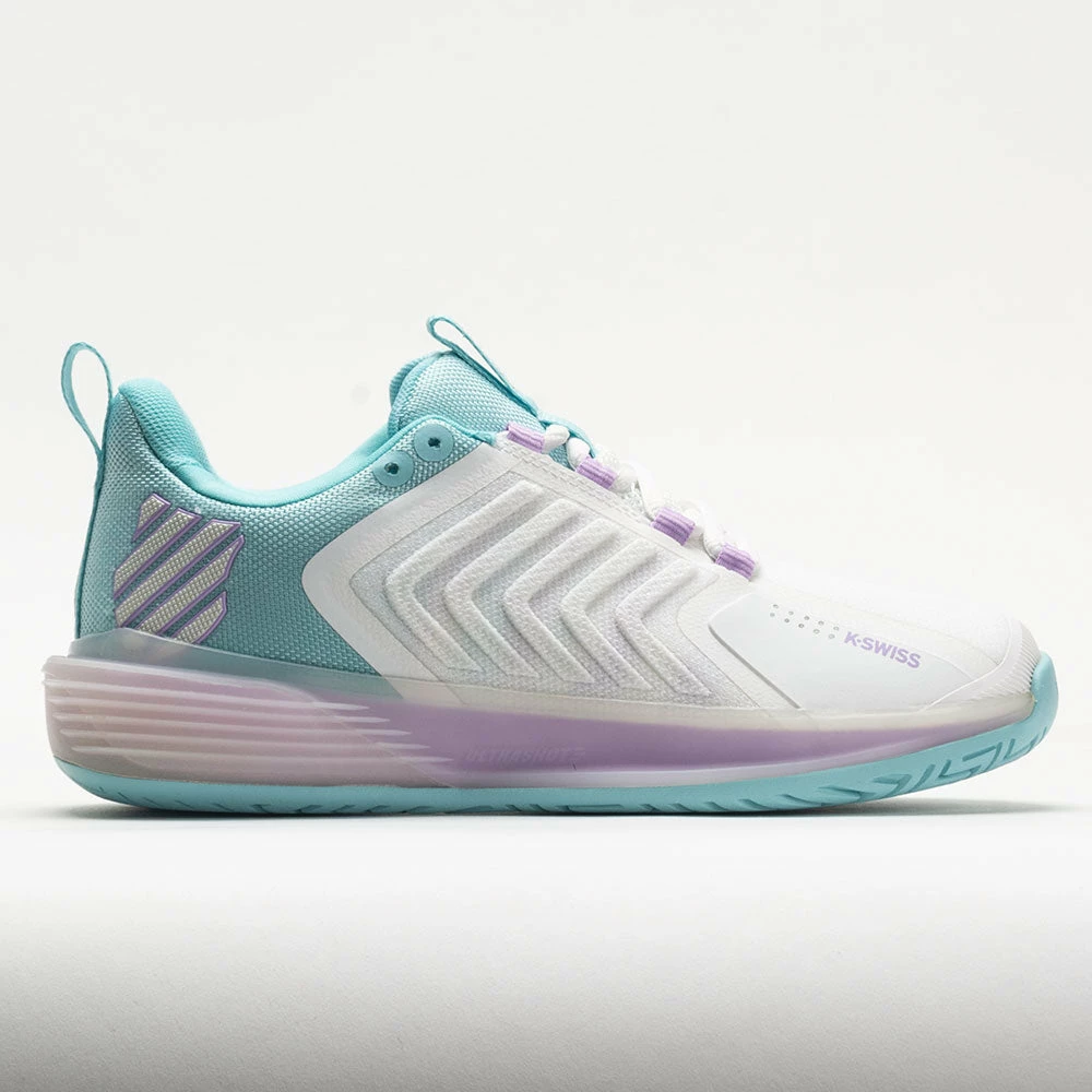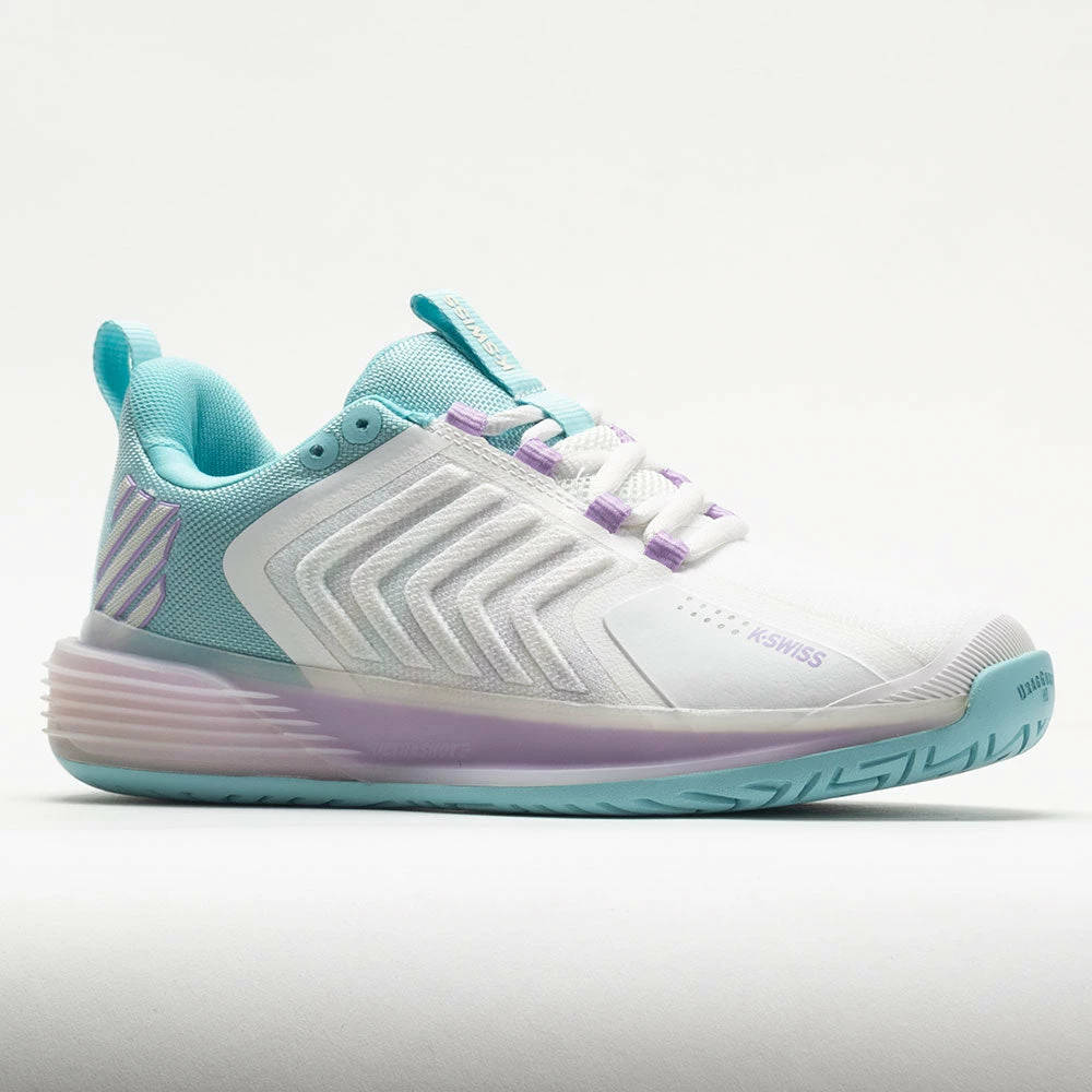 Built for the new wave of aggressive and powerful tennis players, the K-Swiss UltraShot 3 enables rapid movements. With a protective DuraWrap around the toe and DragGuard™ 7.0 technology in the heel, this tennis shoe covers you in key areas. Move confidently in any direction with the 360 Plantar Support Chassis in the midsole. Stay energized during long matches on the lightweight Surge 7.0 midsole. Built for fierce rallies against tough challengers, the K-Swiss UltraShot 3 helps you play at a high level!