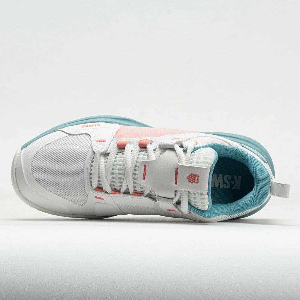 Get support for any surface in the K-Swiss Ultrashot Team! The latest member of the Ultra family, this budget-friendly version of the Ultrashot 3 tennis shoe offers durability and comfort at a lower cost. Slide into a light and breathable mesh upper with translucent paneling for sophisticated style and reliable comfort. Stay energized during long matches on the lightweight Surge 7.0 midsole. Key visual elements like the five chevron stripes on the quarter and enlarged shield logo on the heel create a tennis and lifestyle vibe every time you take the court.