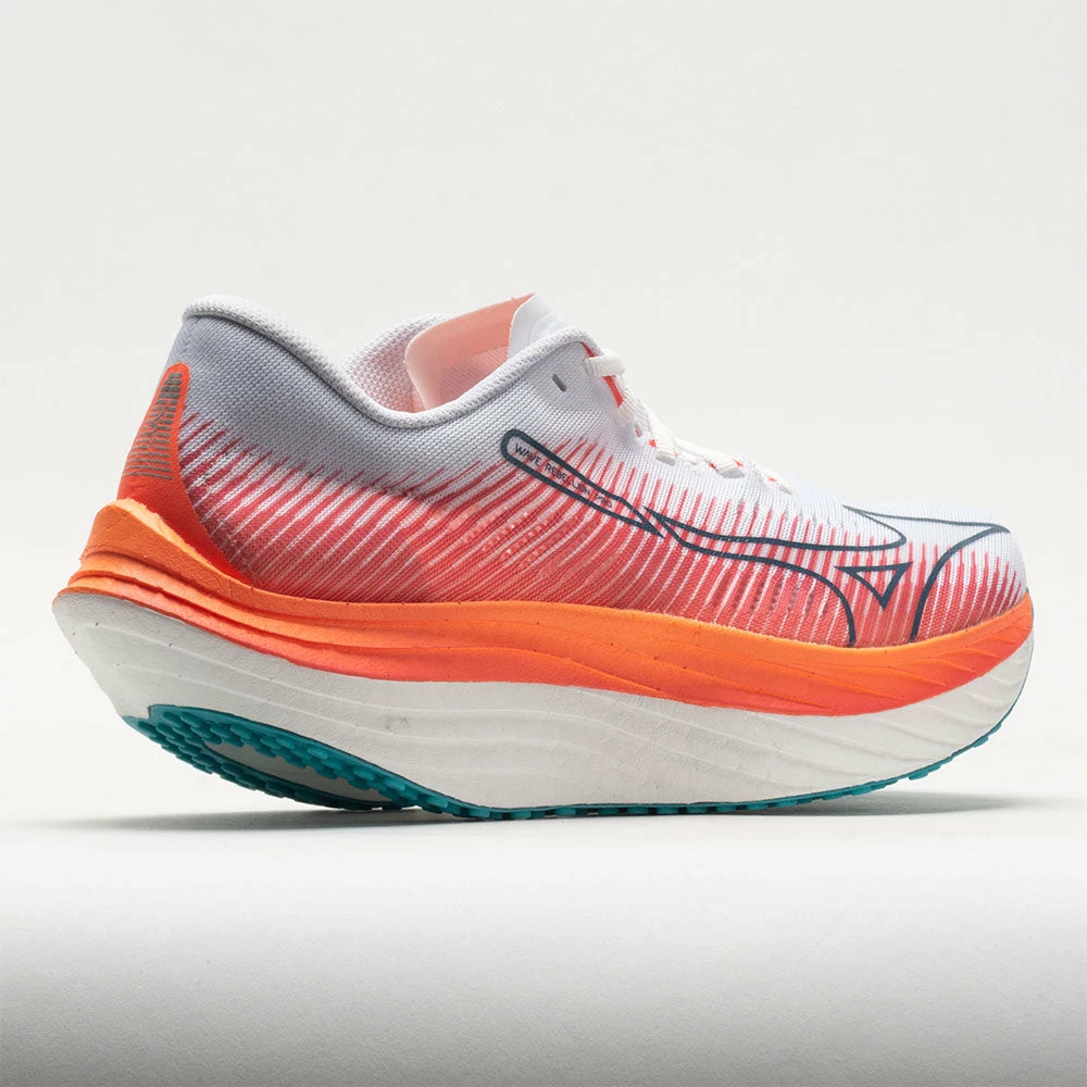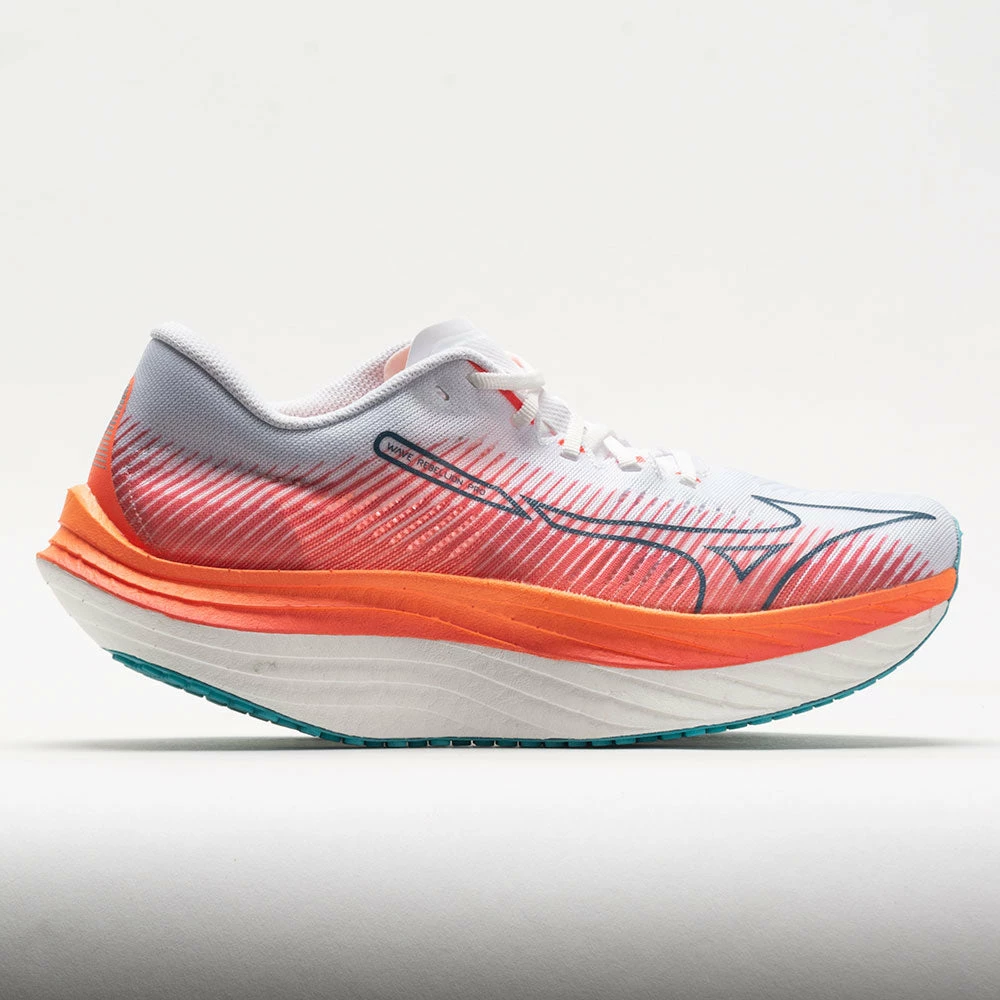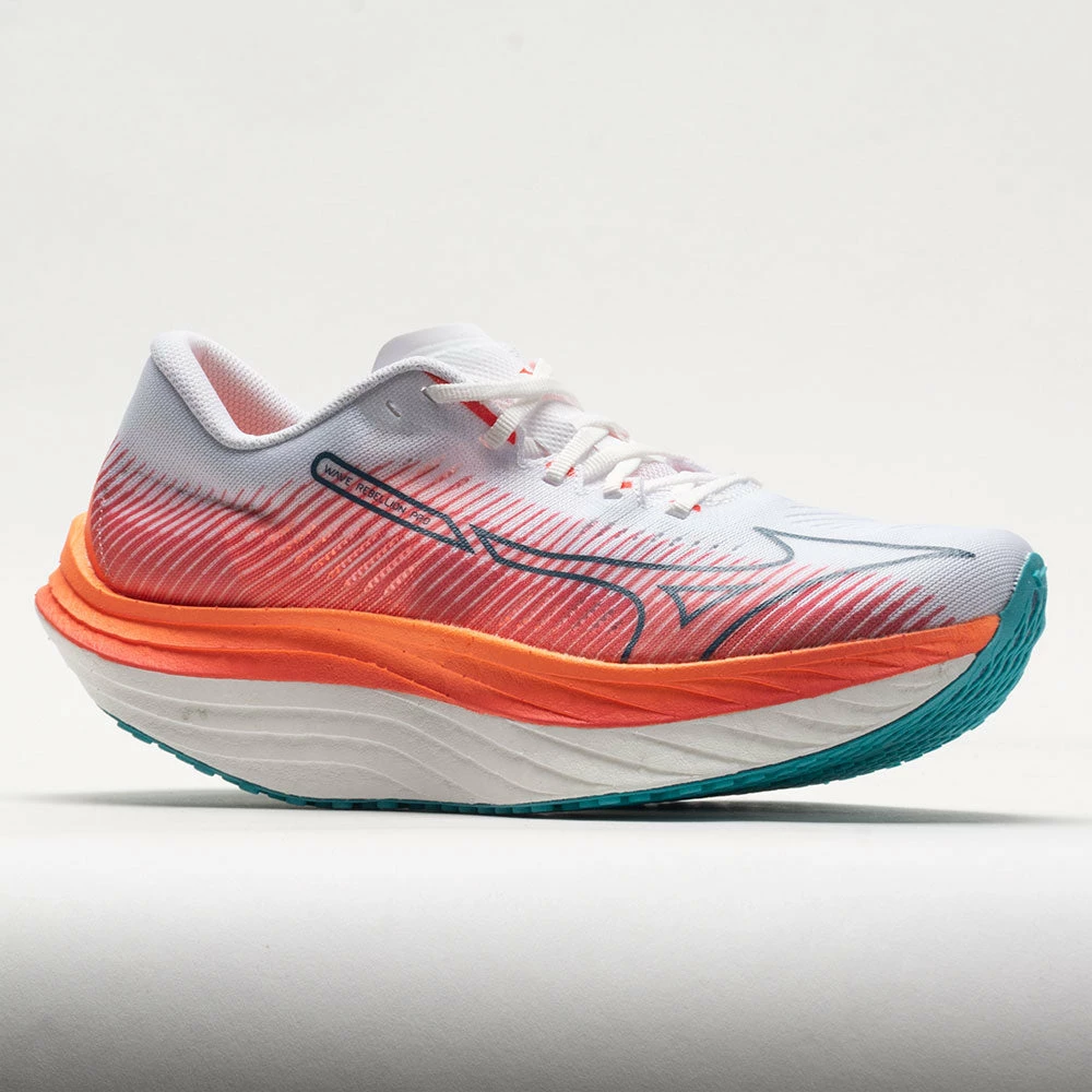 Midsole: Mizuno Enerzy Lite foam provides soft cushion and high energy return. Carbon-reinforced Mizuno Wave plate features different rigidities for soft landings and a stable feel. Smooth Speed Assist Technology provides smooth transitions from its unique geometry.