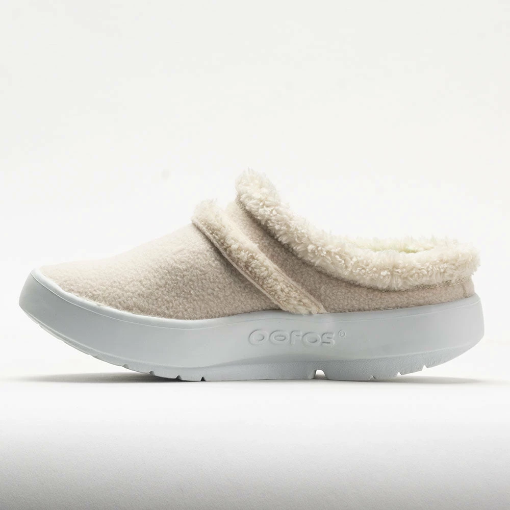 Enjoy cozy warmth and versatile style in the OOFOS OOcoozie Mule! Great for lounging indoors or running errands, this soft recovery shoe features an easy, no-fuss design for your active lifestyle. The warm vegan sherpa material in the upper is recyclable and machine washable. Every step on the patented OOFoamâ„¢ technology provides a shock-absorbing sensation that increases comfort. Add in a supportive, arch-cradling footbed, and the OOFOS OOcoozie Mule helps you recover faster!