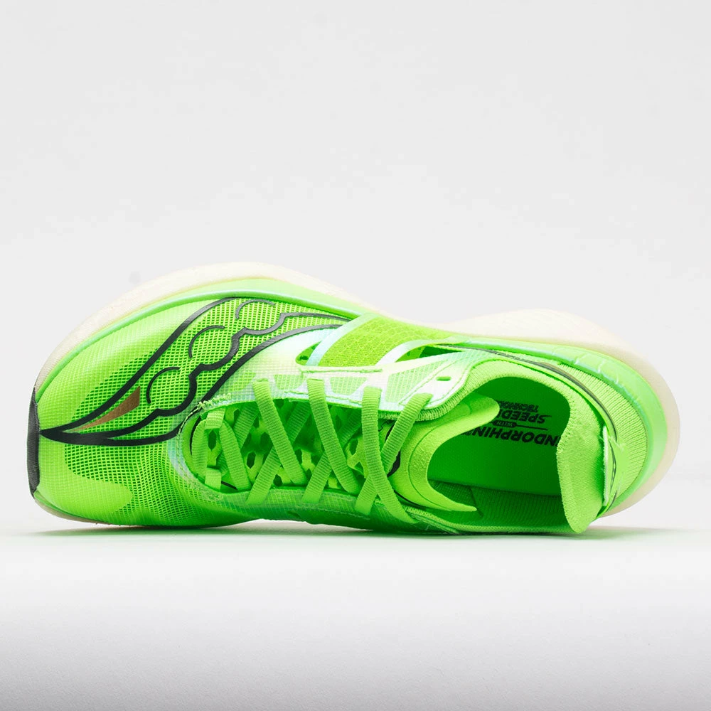 Get ready to push your limits. Built to break barriers, the Saucony Endorphin Elite helps you explore your potential. This speedy racing shoe features a propulsive carbon plate and aggressive Speedroll technology for explosive transitions. Slip into a distraction-free upper and enjoy step-in comfort from your first stride to the finish line. The PWRRUN HG super foam midsole provides more rebound to propel you toward personal bests. In the Saucony Endorphin Elite, your best is yet to run!