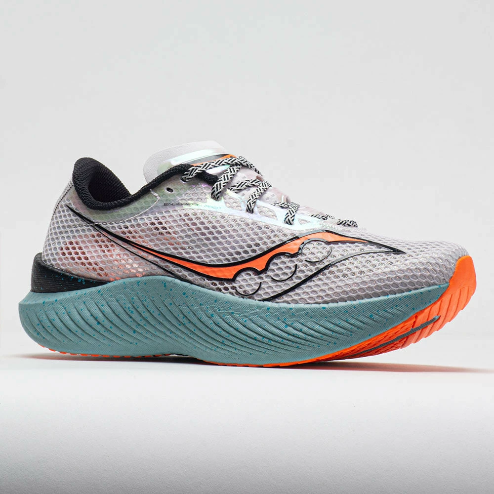 Paint the road with swift strokes in the Saucony Endorphin Pro 3! Soft and explosive, this race-day running shoe features ample cushioning and a carbon fiber plate to propel you to the finish line. Enjoy customized comfort at fast tempos in the FORMFIT upper. Every stride on the PWRRUN PB cushion delivers an ultra-light, explosive ride to reach top speed. The signature S-curve carbon fiber plate and SPEEDROLL geometry combine to drive you forward. With a unique formula that blends softness and propulsion, the Saucony Endorphin Pro 3 makes every mile a masterpiece!