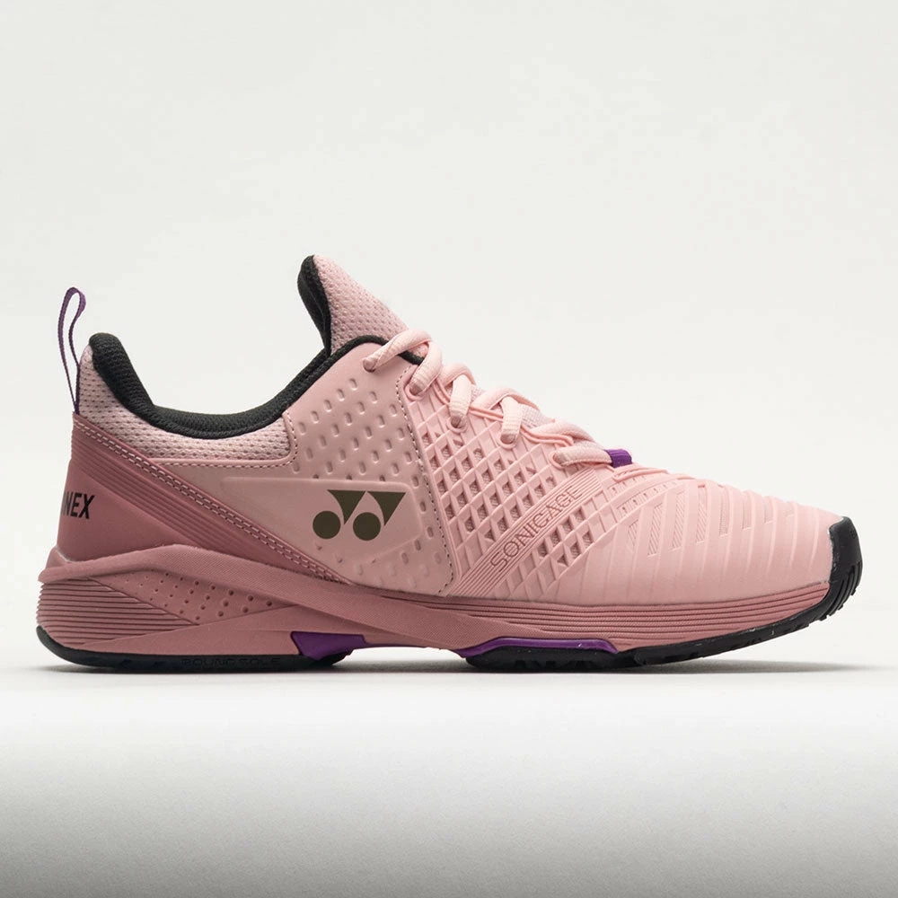 Bring comfort to the court with the Yonex Power Cushion Sonicage 3 tennis shoes. Perfect for recreational and intermediate players, this tennis shoe offers lightweight comfort and stability. Its FlexQuip Durable Skin upper evenly distributes pressure during on-court movements while adding durability for aggressive slides. Every stride on the Power Cushion midsole provides the energy return to propel your next move. Unleash quick and efficient footwork with the Round Sole™ outsole. Light and comfortable, the Yonex Power Cushion Sonicage 3 supports every movement on the court!